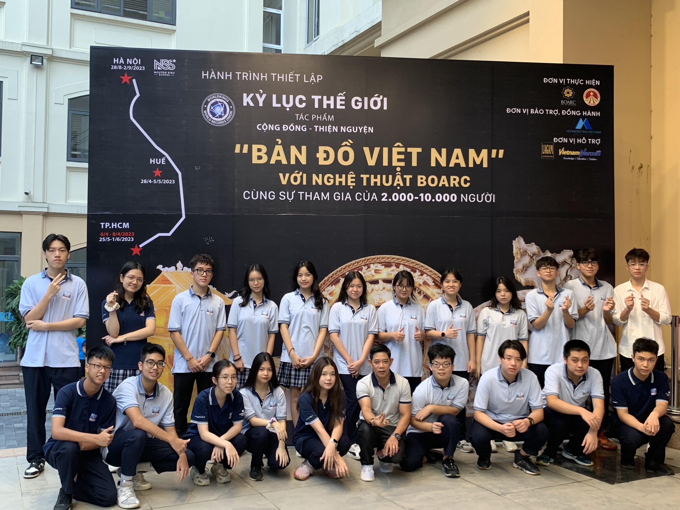 After Ho Chi Minh City and Hue, the world's largest "Map of Vietnam by Boarc Art" project continues its journey to Hanoi. The destination this time is Nguyen Sieu Secondary & High School.