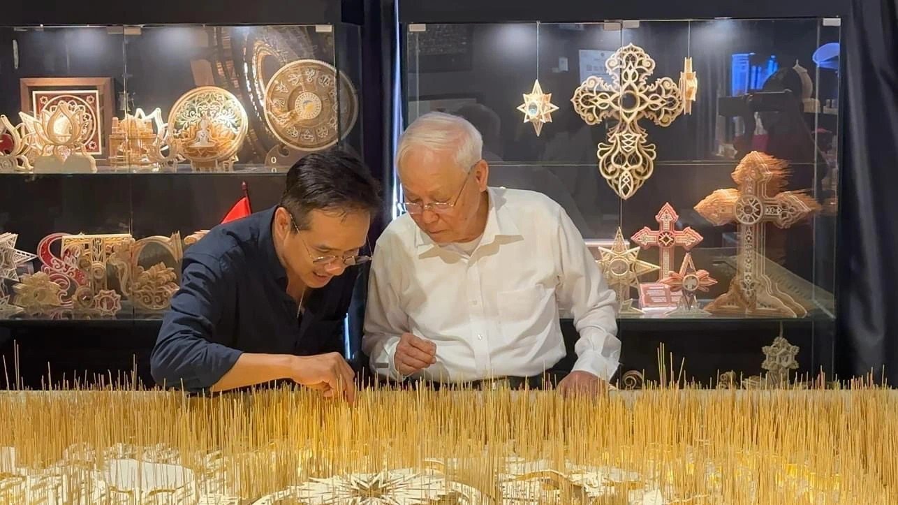 Earlier, Mr. Vinh represented the school to BoArc Gallery and placed the first toothpicks, fueling the special journey of the work.